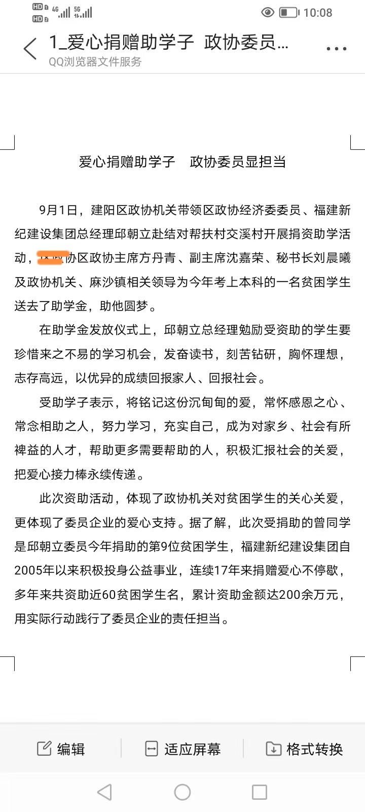 爱心捐助学子,政协委员显担当
